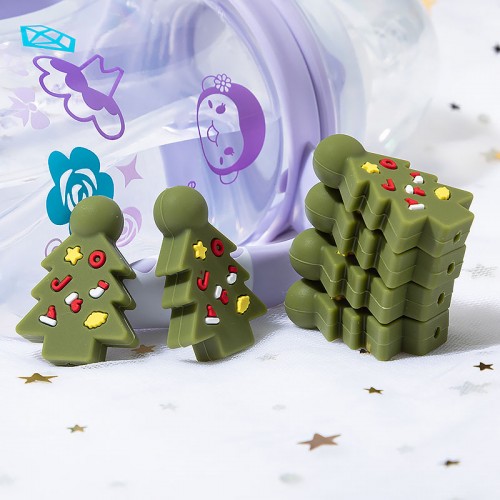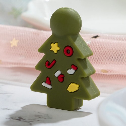 Karácsonyfa formájú szilikon formagyöngyök melyek kiválóak mindenféle babák számára készült rágókák, cumiláncok vagy akár anyaláncok és egyéb ékszerek készítéshez.