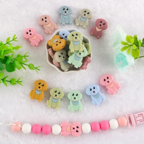 Kutya formájú szilikon formagyöngyök melyek kiválóak mindenféle babák számára készült rágókák, cumiláncok vagy akár anyaláncok és egyéb ékszerek készítéshez.