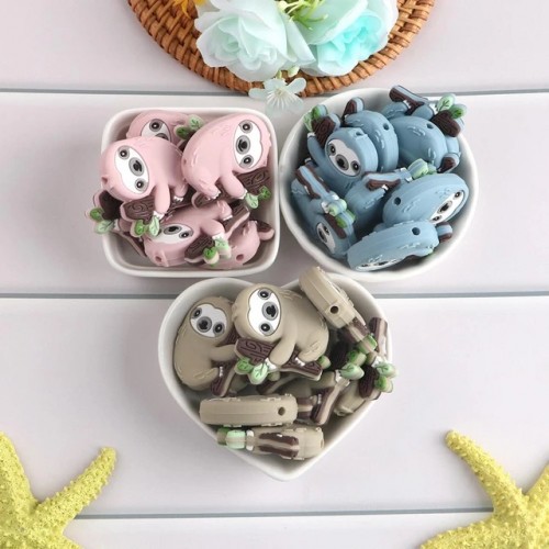 Lajhár formájú szilikon formagyöngyök melyek kiválóak mindenféle babák számára készült rágókák, cumiláncok vagy akár anyaláncok és egyéb ékszerek készítéshez.