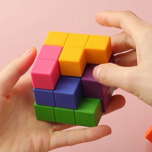 7 db-os logikai szilikon kirakó melyből egy kocka rakható ki, vagy bármi más amit a képzeletünk enged. Remek