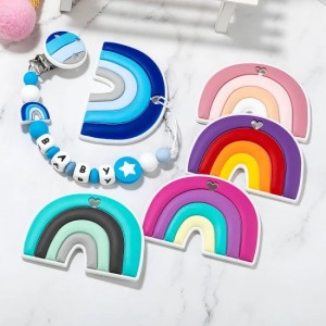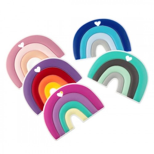 Szivárvány formájú rágóka mely kiváló alapanyag cumiláncokhoz. A babák imádni fogják fogzás idején mert bordás felületének köszönhetően finoman masszírozza a baba ínyét rágás közben.
