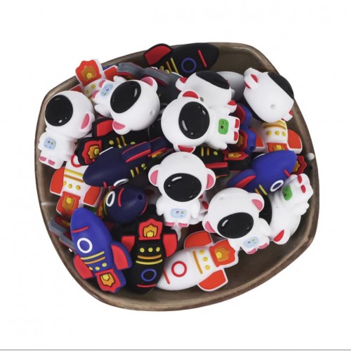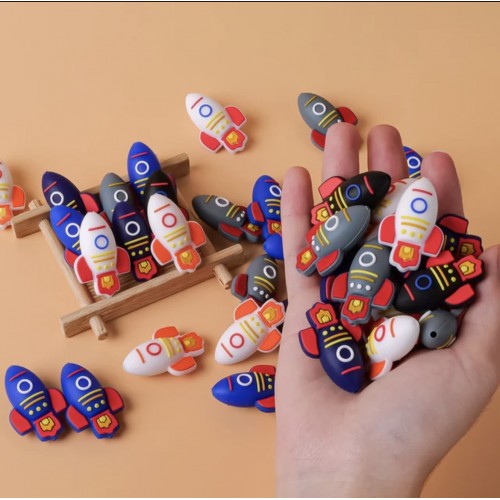 Űrhajó formájú szilikon formagyöngyök melyek kiválóak mindenféle babák számára készült rágókák, cumiláncok vagy akár anyaláncok és egyéb ékszerek készítéshez.