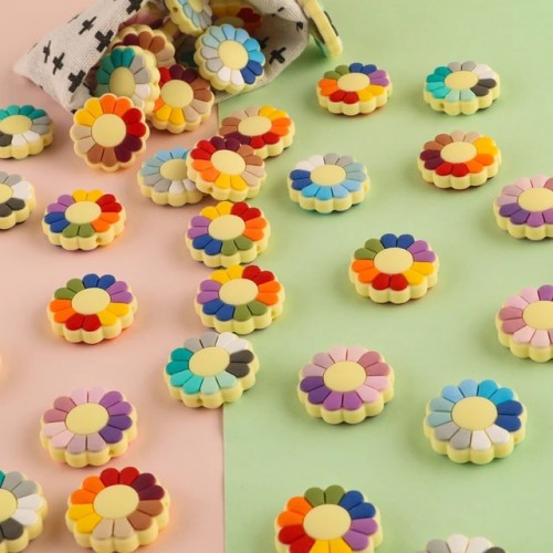 Virág formájú szilikon formagyöngyök melyek kiválóak mindenféle babák számára készült rágókák, cumiláncok vagy akár anyaláncok és egyéb ékszerek készítéshez.